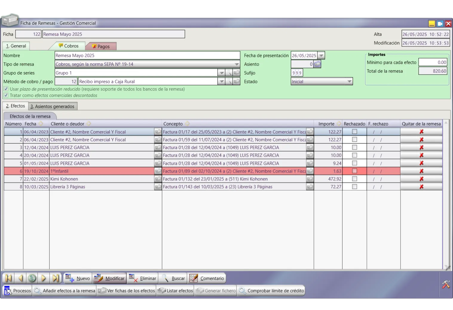 Tanto los cobros como los pagos, pueden provenir de facturas o pueden ser creados desde la propia remesa bajo diferentes criterios.