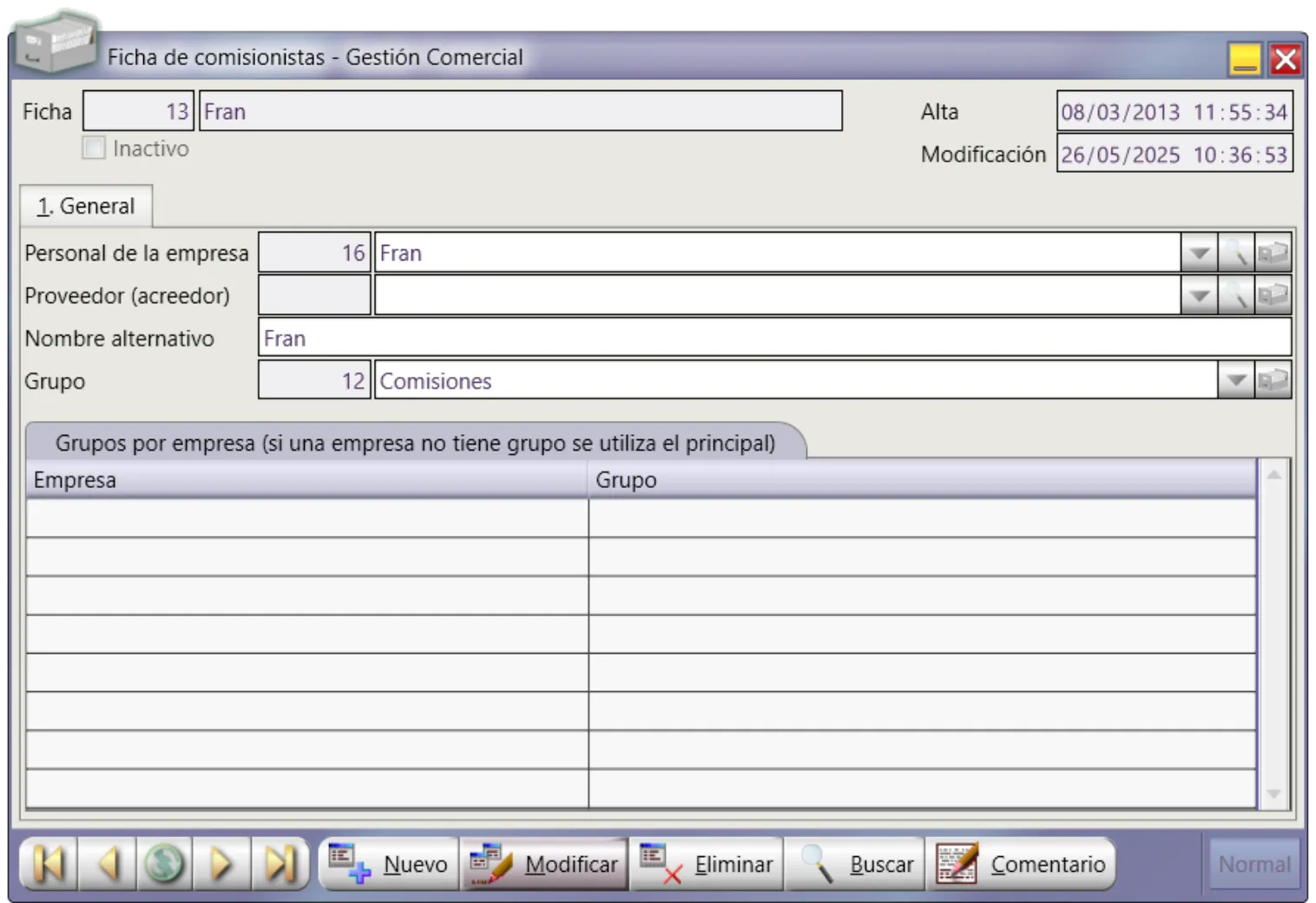 Comisiones por agentes.