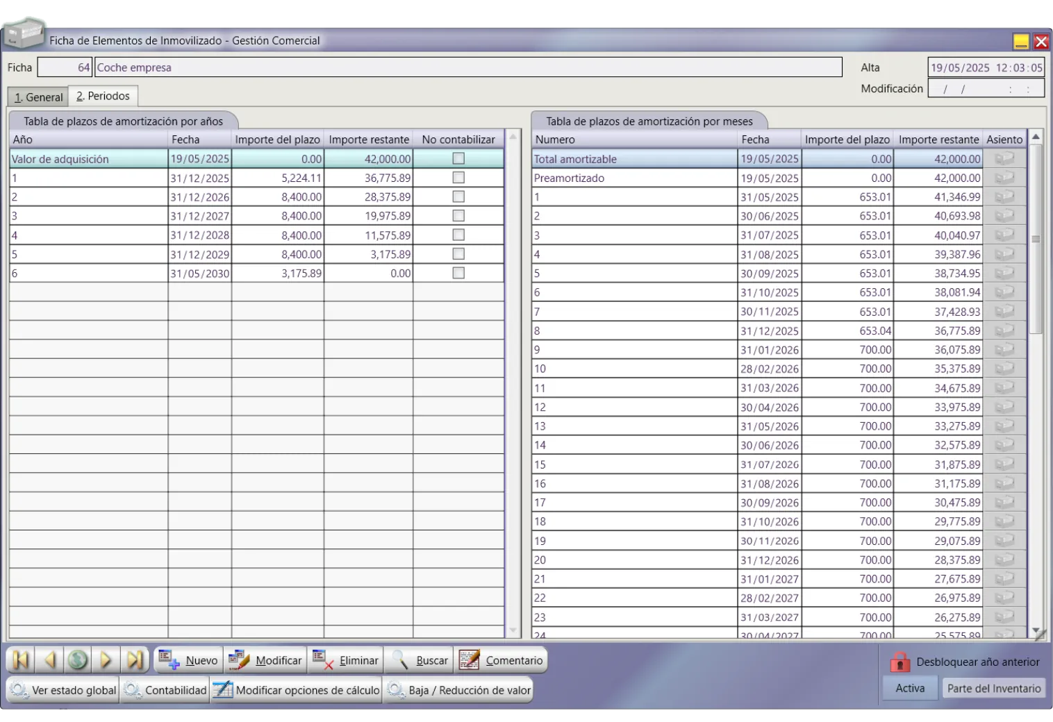 Facturaciones periódicas por días, meses y años.