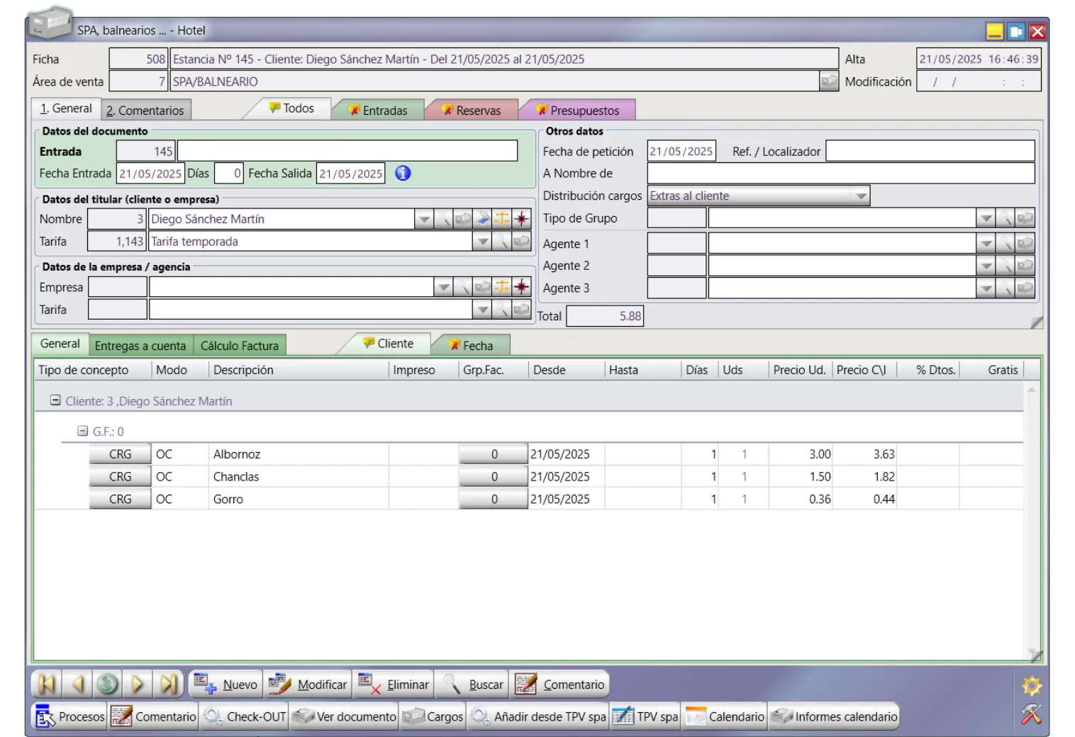 Nuestro programa lo recogerá, dando de alta al cliente, la reserva y el pago a cuenta.