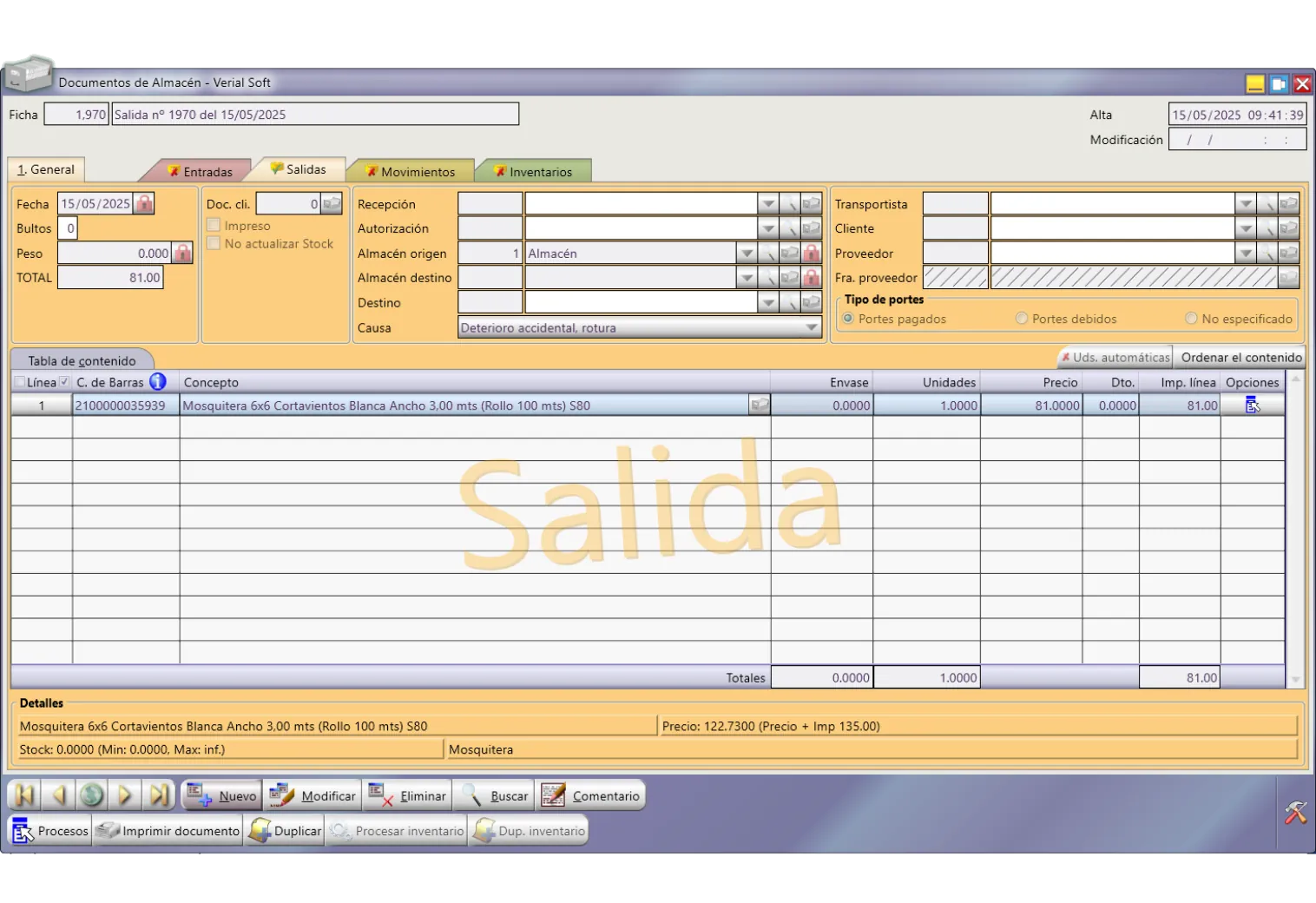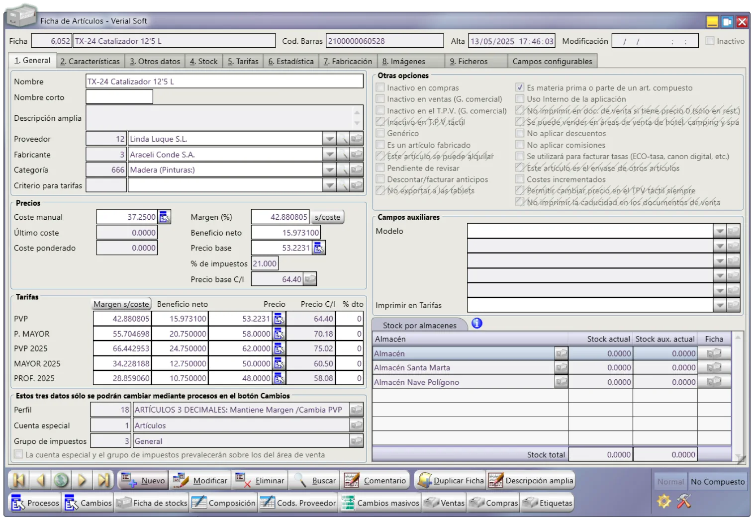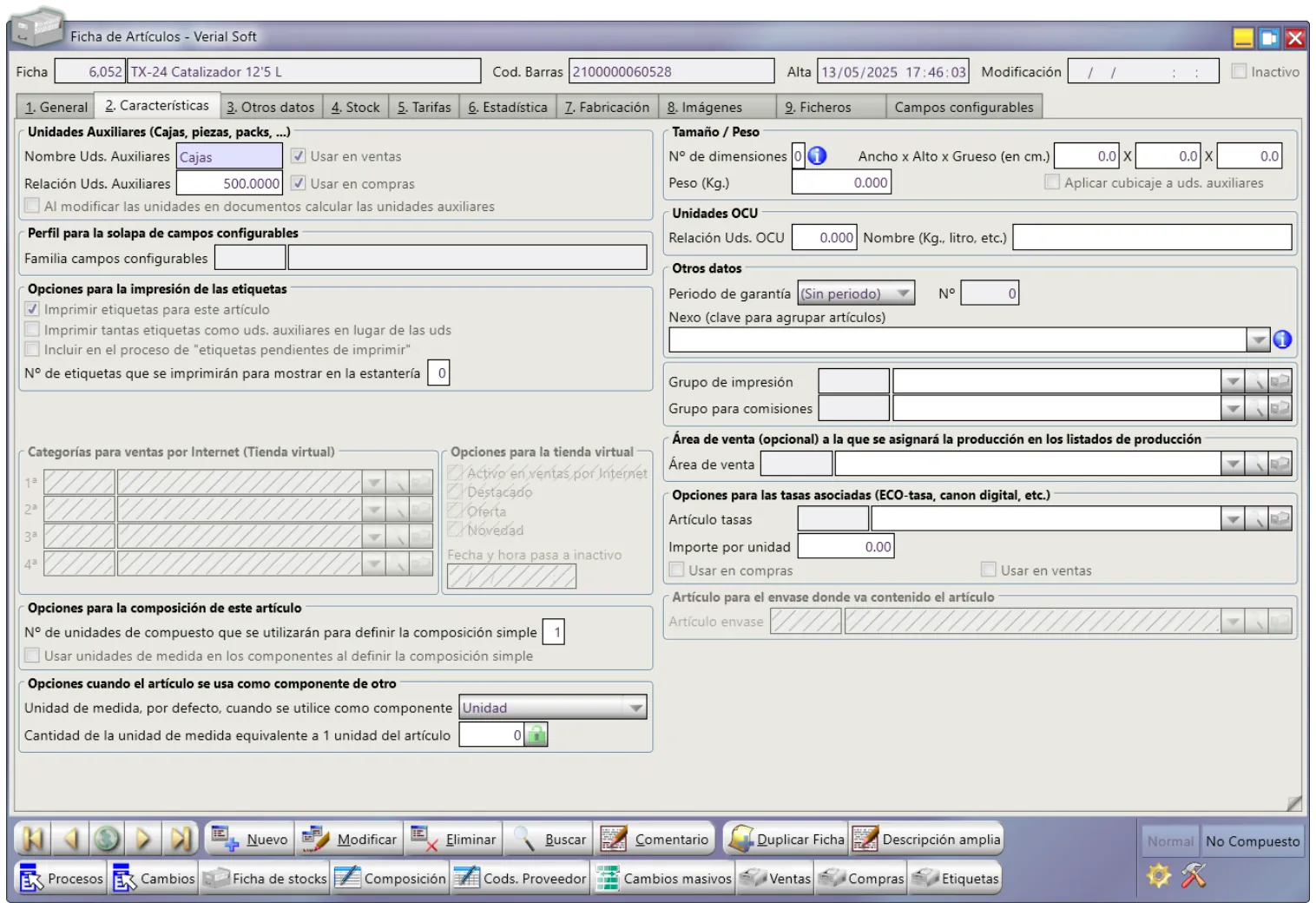 Dimensiones comerciales y logísticas, envíos, partidas, lotes y caducidades, etc.