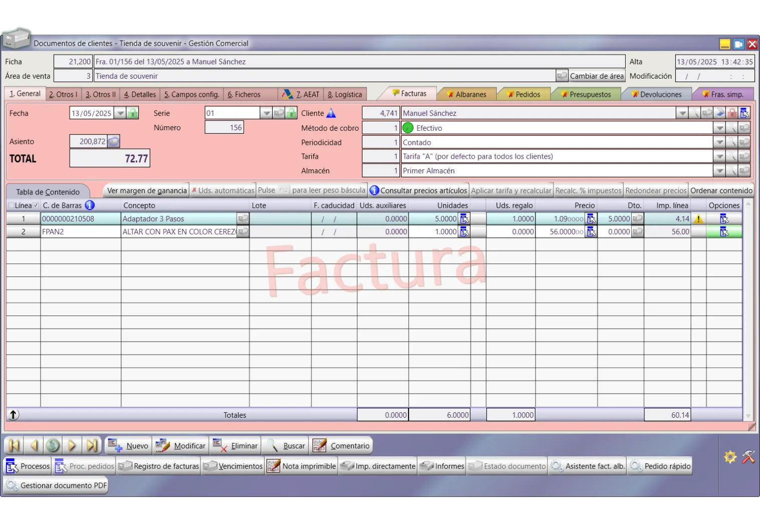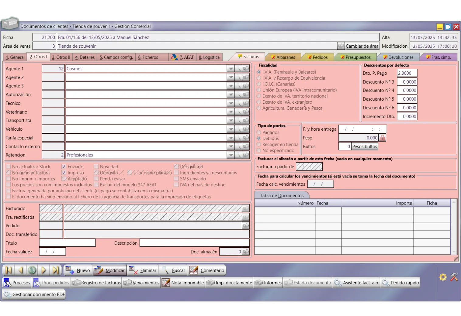Las facturas generadas se pueden abrir y añadir más cargos.