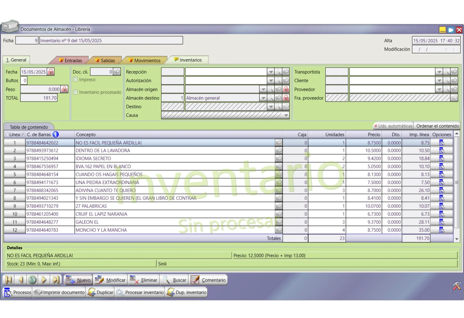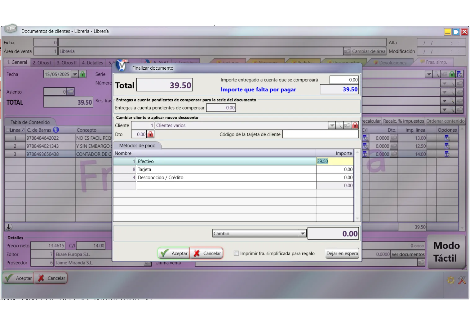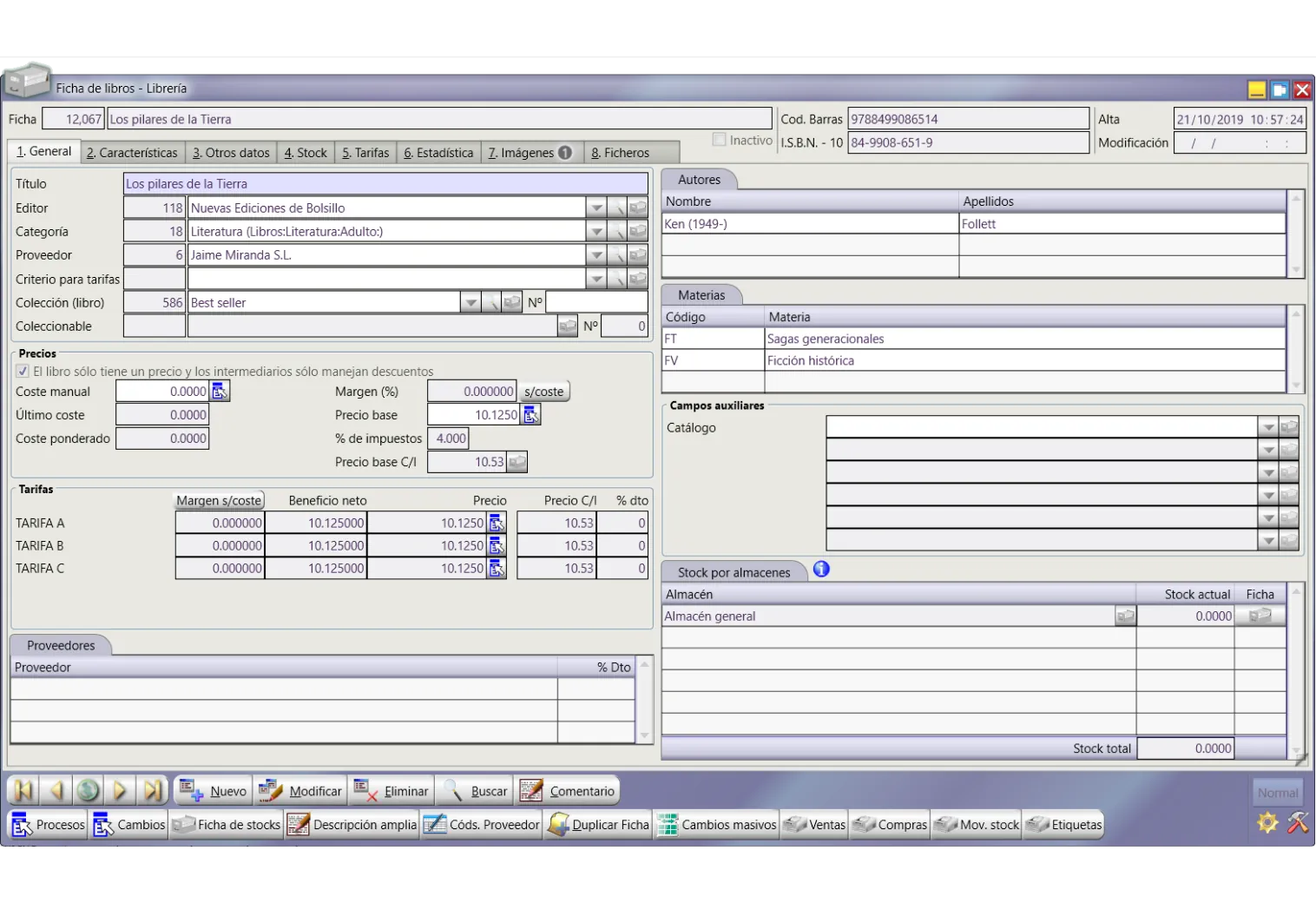 Permite gestionar: alta de libros de precio libre o fijo alta de documentos en firme o depósito, cambios de precios, cambios de estado, etc.